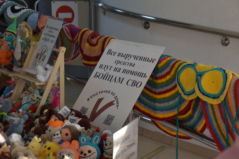 На ярмарке все желающие могут купить предметы для быта или интерьера, мягкие игрушки, сладости и травяной чай. Также продукцию можно купить для бойцов и сложить в специальный контейнер с пожеланиями, а эти весточки обязательно передадут солдатам в зону военных действий. Игрушки для детей изготавливают своими руками женщины из кризисного центра. Все вырученные деньги с ярмарки пойдут на помощь бойцам СВО.